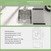 - Space-Saving Design: Offers a 13 x 15 inch area with a 9-inch deep single bowl for efficient dish cleaning.