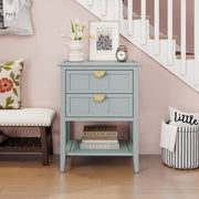 2 Drawer Side Table, American Style, End Table, Suitable For Bedroom - Blue