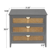 3 Drawer Cabinet Natural Rattan Suitable For Bedroom - Gray