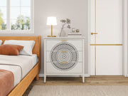 3 Drawer Cabinet With Hollow Carved 3 Drawer Dresser Storage Chest With Metal Handles For Entryway Living Room Bedroom - Beige