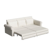 Pull Out Sofa Bed, 3 In 1 Convertible Sleeper Sofa With Nailhead Trim & Rolled Arm, Multi Functional Sofa Bed For Living Room, Bedroom, Apartment, Office - Cream White