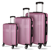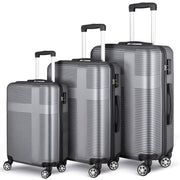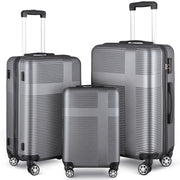 3 Piece Luggage With Tsa Lock Abs, Durable Luggage Set, Lightweight Suitcase With Hooks, Spinner Wheels Cross Stripe Luggage Sets
