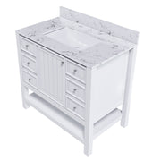 37" Bathroom Vanity With Artificial Marble Carrara Top, Multi Functional Cabinet With Doors And Drawer - White