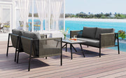 4 Piece Rope Sofa Set With Thick Cushions And Toughened Glass Table, All-Weather Patio Furniture Set For 4 Person With Loveseat