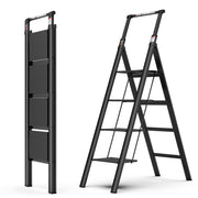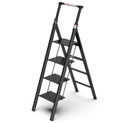 4 Step Ladder, Retractable Handgrip Folding Step Stool With Anti-Slip Wide Pedal, Aluminum Step Ladders 4 Steps, 300Lbs Safety Household Ladder - Black