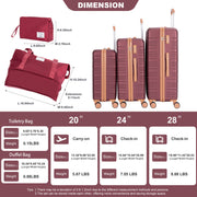 5 Piece Set (20"24"28 +A Travel Bag And A Toiletry Bag), Hard Case Spinner Wheels Luggage Sets With Tsa Lock Carry On Suitcase Luggage Durable Suitcase Color Matching - Wine Red
