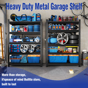 Adjustable Heavy Duty Shelving 5 Tier Storage Shelves, 2000Lbs Load, Kitchen, Garage - Black