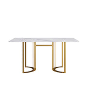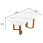 63" Modern Artificial Stone Straight Edge Metal Leg Dining Table, 6 People - White / Gold