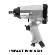 - Complete 4-Tool Set: Includes essential air tools - 1/2" drive impact wrench, air hammer, 1/2" drive ratchet wrench, and air grinder with 1/4" collet and sealed ball bearing construction.