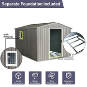 8Ft x 10Ft Outdoor Metal Storage Shed With Metal Floor Base, With Window - Gray