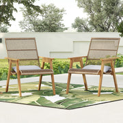 - Material Composition: Crafted with a blend of Acacia wood and wicker, these chairs offer natural warmth and modern durability, perfect for stylish outdoor lounging.