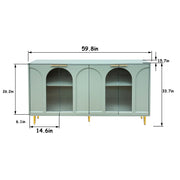 Accent Cabinet Lacquered Wooden Cabinet With 4 Glass Doors Sideboard Buffet Server Cabinet Storage Cabinet, For Living Room, Entryway, Hallway, Office, Kitchen And Dining Room - Mint Green