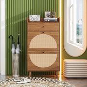Allen - Rattan 2 Door 1 Drawer Cabinet Shoe Rack For Entrance