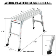 Aluminum Work Platform Large Size Step Stool Folding Portable Work Bench 40" Width Telescopic Feet Height Adjustable - Gray