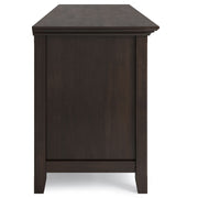 • Features a large centrally located open area with two drawers as well as two (2) framed doors with enclosed spaces; the two (2) large side storage cabinets open to one adjustable shelf each.