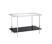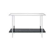 - Sleek Stability: Supported by a sleek metal frame with square-straight legs in a polished chrome finish, the table ensures both stability and a contemporary aesthetic appeal.