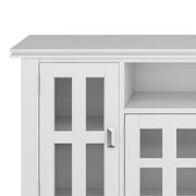 • Features a large centrally located open area with one (1) flip down drawer, one (1) pull out drawer as well as four (4) storage spaces with tempered glass doors.