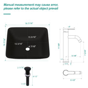 - Dimension & Accessories: Includes faucet, pop-up drain, and water lines; sink measures 16.42 x 16.42 x 4.41 inches.