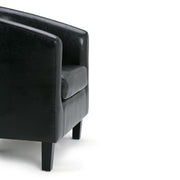- Features curved back, sides with top stitching detail, dark brown solid wood legs and removable high density foam seat cushion