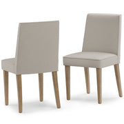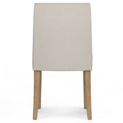 - Contemporary styling includes piping detail on seat and seat back, and solid rubberwood legs