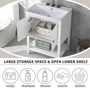 Bathroom Vanity Base Only, Soild Wood Frame, Bathroom Storage Cabinet With Doors And Open Shelf - White