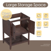 Bathroom Vanity Base Only, Soild Wood Frame, Bathroom Storage Cabinet With Doors And Open Shelf - Brown