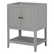 Bathroom Vanity Base Only, Soild Wood Frame, Bathroom Storage Cabinet With Doors And Open Shelf - Gray