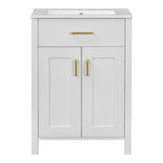 Bathroom Vanity Combo With Ceramic Sink, Luxurious Space-Saving Vanity, 2 Soft-Close Doors - Gold / White