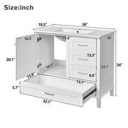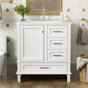 36" Bathroom Vanity With Solid Pine Frame, Soft Close Door Drawers - White