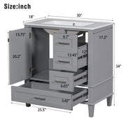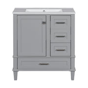 Bathroom Vanity, Modern Bathroom Cabinet With Sink Combo Set, Bathroom Storage Cabinet With A Soft Closing Door And 3 Drawers, Solid Wood Frame - Gray