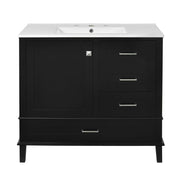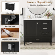 36" Bathroom Vanity With Solid Pine Frame, Soft Close Door And Drawers, Storage Cabinet - Black