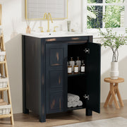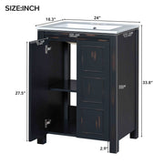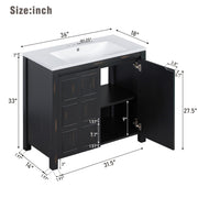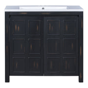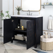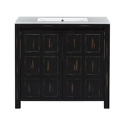 Vintage Style Small Bathroom Vanity Combo With Ceramic Sink, 2 Soft-Close Doors - Espresso