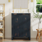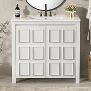 Vintage Bathroom Vanity Organizer With Sink And Storage Cabinet, 36" - Antique White