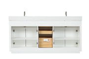 - Ample Storage: Designed with practicality in mind, this bathroom cabinet includes three soft-close drawers and four doors with adjustable shelves. Additionally, a power station box is included to store items like hair dryers and curlers, ensuring a tidy and dust-free bathroom environment.