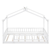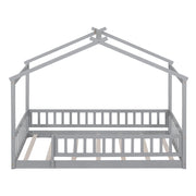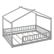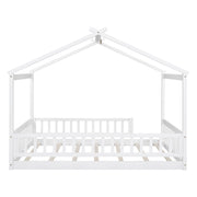 Playhouse Design: Featuring a roof and fence, this unique bed creates a fun and charming space that serves as both a comfortable sleeping area and a playful retreat for kids to enjoy.