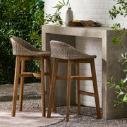 Beeson - Outdoor Wicker And Acacia Wood Barstools Set, Water Resistant - Brown