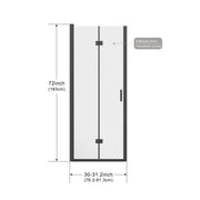 Frameless Glass Shower Door 32" X 72" With Tempered Clear Glass, Reversible Installation - Black
