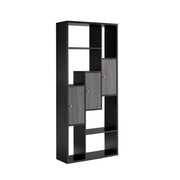 Bookcase Display Storage Cabinet, Multi Shelves - Black / Distressed Gray