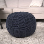 Bordeaux - Knitted Cotton Round Pouf Ottoman And Floor Cushion - Dark Blue