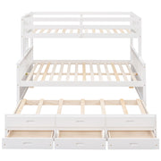 Twin Over Full Bunk Bed With Twin Size Trundle, With Drawers For Bedroom - White