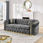 Velvet Button Tufted Sofa Couch With 2 Pillows 3 Seater Luxury Chesterfield Sofa Set With Stainless Steel Accents For Living Room - Gray