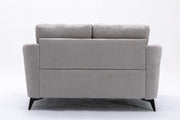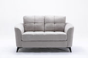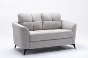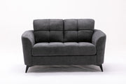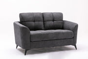 • The Callie loveseat provides world-class comfort and style with a tufted cushion design and black metal legs. A great look for formal gatherings yet perfect for the family as well. The comfortable fabric will keep guests satisfied and looking elegant while the metal legs will blend luxuriously into a wide selection of rugs.