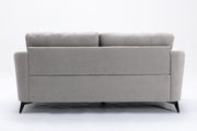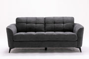 - The Callie sofa provides world-class comfort and style with a tufted cushion design and metal legs. A great look for formal gatherings yet perfect for the family as well. The comfortable fabric will keep guests satisfied and looking elegant while the metal legs will blend luxuriously into a wide selection of rugs.