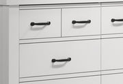 - The Cassini White 6-Drawer Dresser offers ample storage with its six spacious drawers, providing you with the perfect solution to keep your belongings organized and easily accessible. A unique visual element with its top drawers is the split design while maintaining their full size. Each drawer features sleek black handles that not only add a modern touch but also ensure convenient opening and closing. With its clean and contemporary design, the Cassini White 6-Drawer Dresser effortlessly complements a variety of interior styles, from minimalist to modern. Whether you place it in your bedroom, guest room, or even your living room, this dresser adds both functionality and aesthetic appeal to any space.