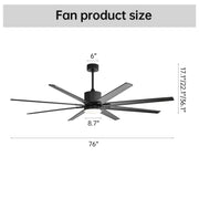 Ceiling Fan With 18W Dimmable Led Light Remote Control 8 Solid Wood Blades For Living Room - Black