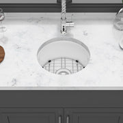 Ceramic Circular Kitchen Sink With Drain Assembly And Bottom Grid, 18" Dual Mount - White