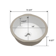 Ceramic Round Undermount Bathroom Sink With Overflow, European Style - White
