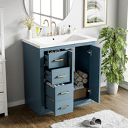 Bathroom Vanity With Ceramic Sink Combo, Frame Bathroom Storage Cabinet, Freestanding Vanity Set With 3 Drawers & Soft Closing Doors - Blue