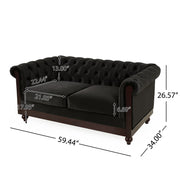 Chesterfield Velvet Loveseat Sofa, 2 Person Rolled Arm Upholstered Couch - Black