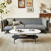 Contemporary Coffee Table Sintered Stone Surface With Ceramic Finish Double Layer Design Base Matte Shelf Modern Living Room Center Table - White / Gray